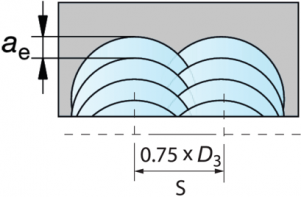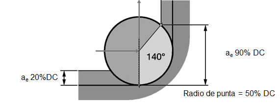 Nota: Si ejecuta un ae, del 20% de Dc (Dc 20 ae = 4 mm) en el recorrido normal de la herramienta, existe una VF mucho más alto.