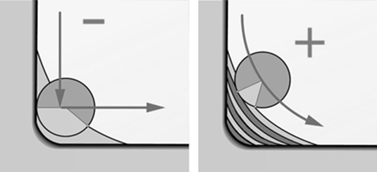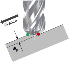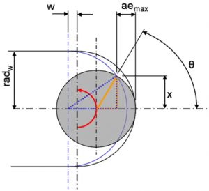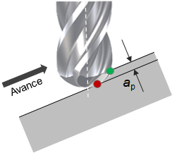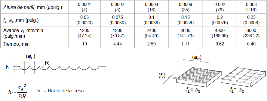 Un cortador de punta esférica o un filo de corte en forma de radio formarán una superficie con una cierta altura de traslape, dependiendo de la profundidad de corte y el avance, son factores que influyen en las fuerzas de corte y el desbaste y semiacabado, si el avance por diente es mucho más pequeño que el ancho y la profundidad de corte, la superficie generada tendrá una cúspide mucho más pequeña en la dirección del avance.