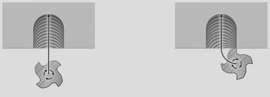 1) Siempre se prefiere la rampa circular porque el corte radial se reduce y permite un fresado descendente puro y una mejor evacuación de viruta.
