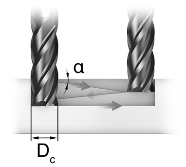 2) Es importante mantener la relación entre el diámetro de la fresa y la anchura de la ranura por debajo del 70% y el paso radial, w, por debajo del 10% de Dc.