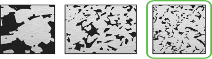 La proporción de la fase de carburo generalmente es entre el 70 y el 97% del peso total del material compuesto, y el valor medio de su tamaño de grano varía entre 0,4 y 10 μm.