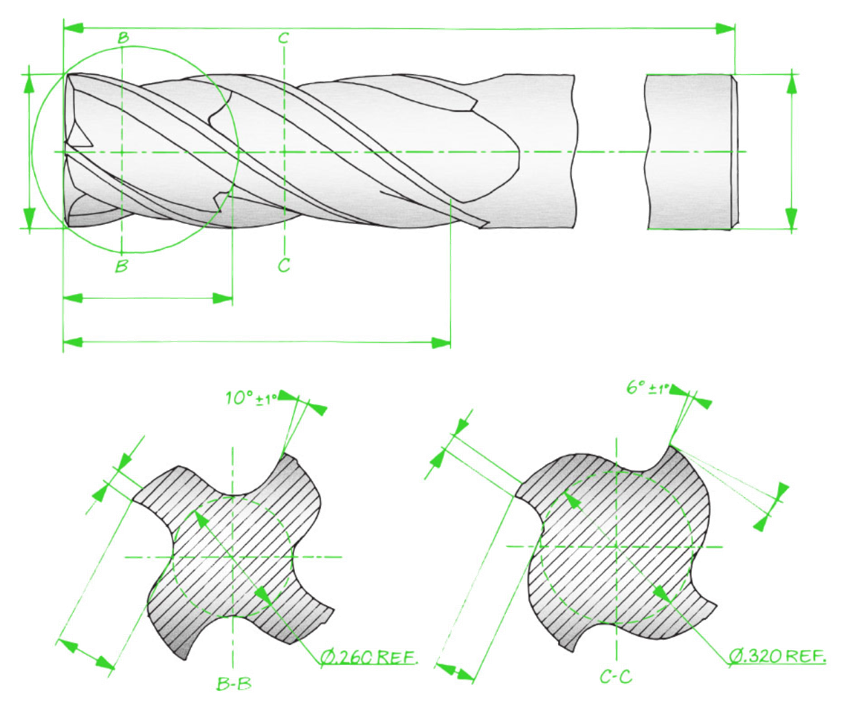 Esta geometría rediseñada obtiene una rigidez máxima debido a una sección de flautas de mayor tamaño en el lugar donde se experimenta el torque más significativo.