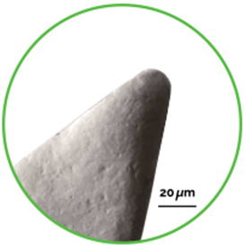 Superficie precisa, constante y controlada a lo largo del filo (5-15 micras).