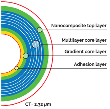Recubrimiento nano-gradiente que garantiza una adherencia óptima, resistencia térmica, un coeficiente de fricción bajo y alta durabilidad.