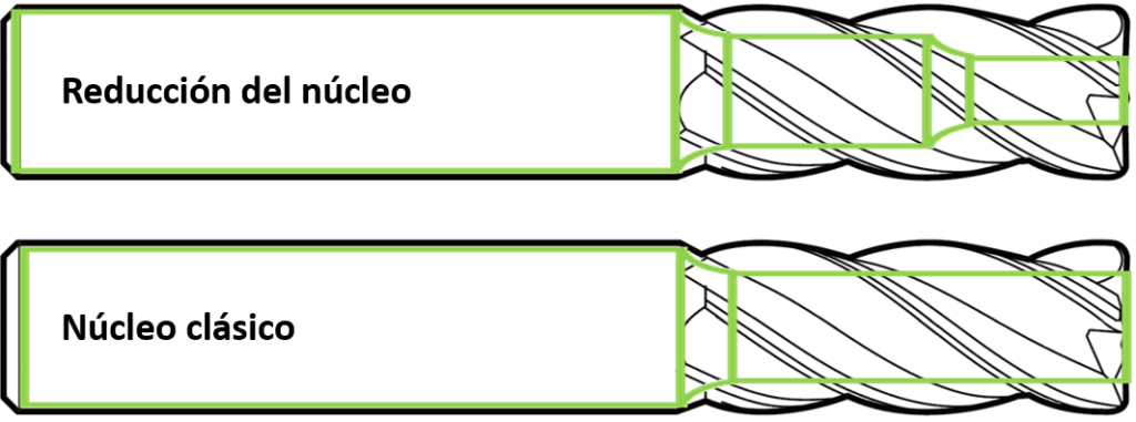 El objetivo de la reducción del núcleo es dotar a la herramientas de una profundida de desahogo variable en cada uno de los filos teniendo las siguientes caracteristicas: