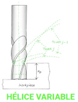 El diseño de la hélice desigual aumenta considerablemente el nivel de estabilidad de la operación y, en consecuencia, reduce la vibración de la herramienta incluso al trabajar con máquinas CNC antiguas, de esta forma se mejora el acabado de la pieza y se aumenta la vida útil de la herramienta.