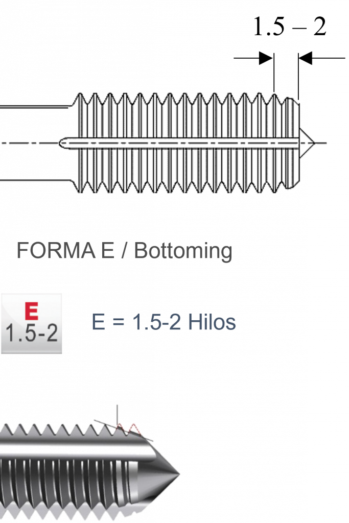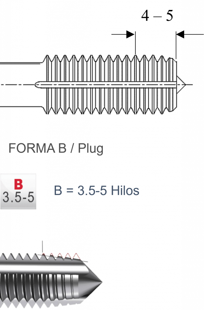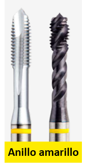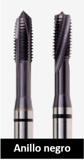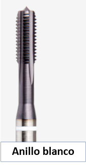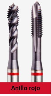 En los machos de anillo rojo el chaflán posterior facilita aún más la evacuación de la viruta, reduce el astillamiento en los últimos hilos del macho y también reduce el par torsor cuando el giro se invierte.