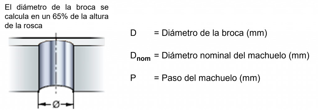 *Formula para calcular el diámetro del barreno para un machuelo de corte