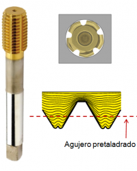 El diseño de las estrías rectas proporciona un excelente rendimiento en el roscado tanto de agujeros pasantes como de agujeros ciegos en materiales de viruta corta.