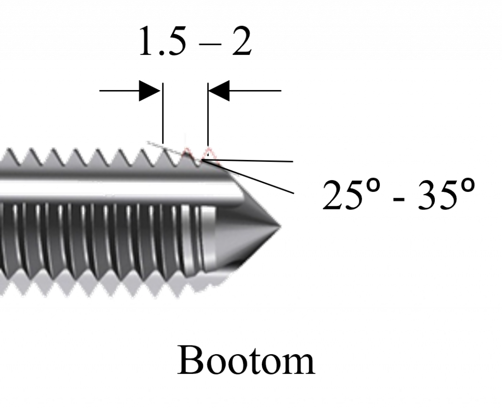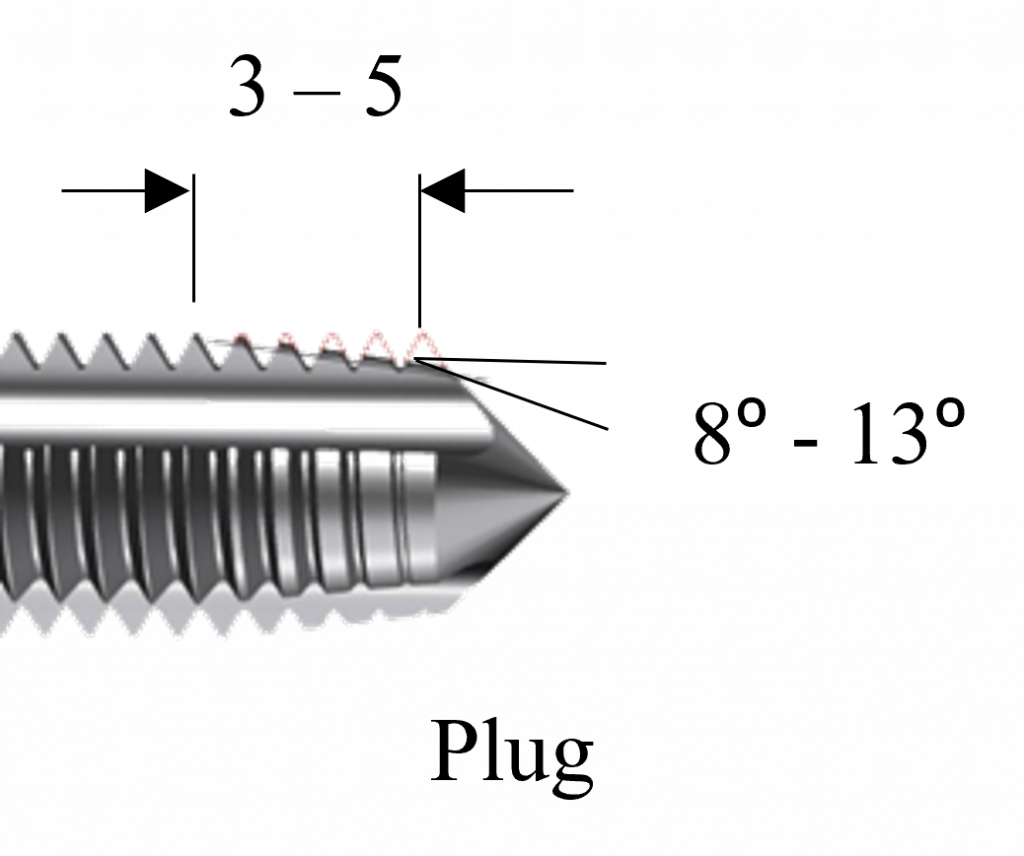 En los machos helicoidales de anillo blanco, el chaflán reduce el astillamiento en los últimos hilos del macho y también reduce el par torsor cuando el giro se invierte.
