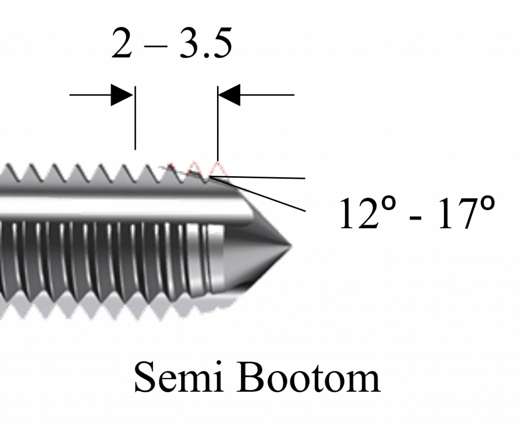 Disponible con entrada en hélice del canal en espiral de 40° para barreno ciego y de 48° en machuelos helicoidales.