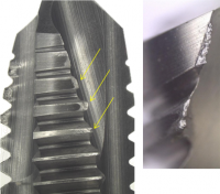 Machuelo erróneo para el material ó aplicación | Utilizar un recubrimiento mas resistente al desgaste |