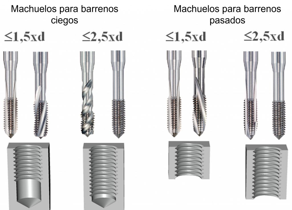 El machuelo golpea la parte inferior del barreno | Aumentar la profundidad del barreno ó reducir la profundidad de roscado |